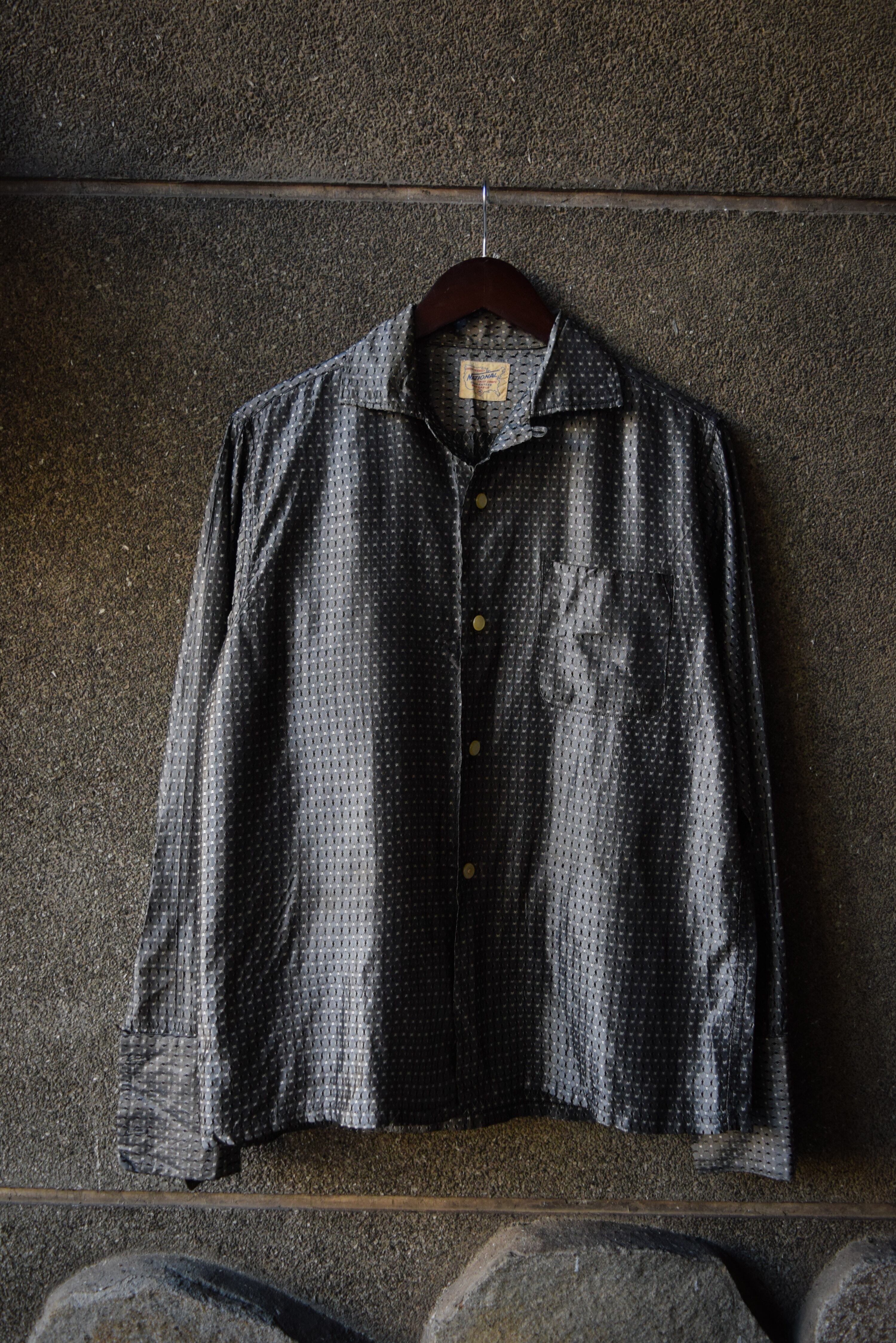 50~60s us ”snakeskin“ silk×acetate jacquard loop collar shirt