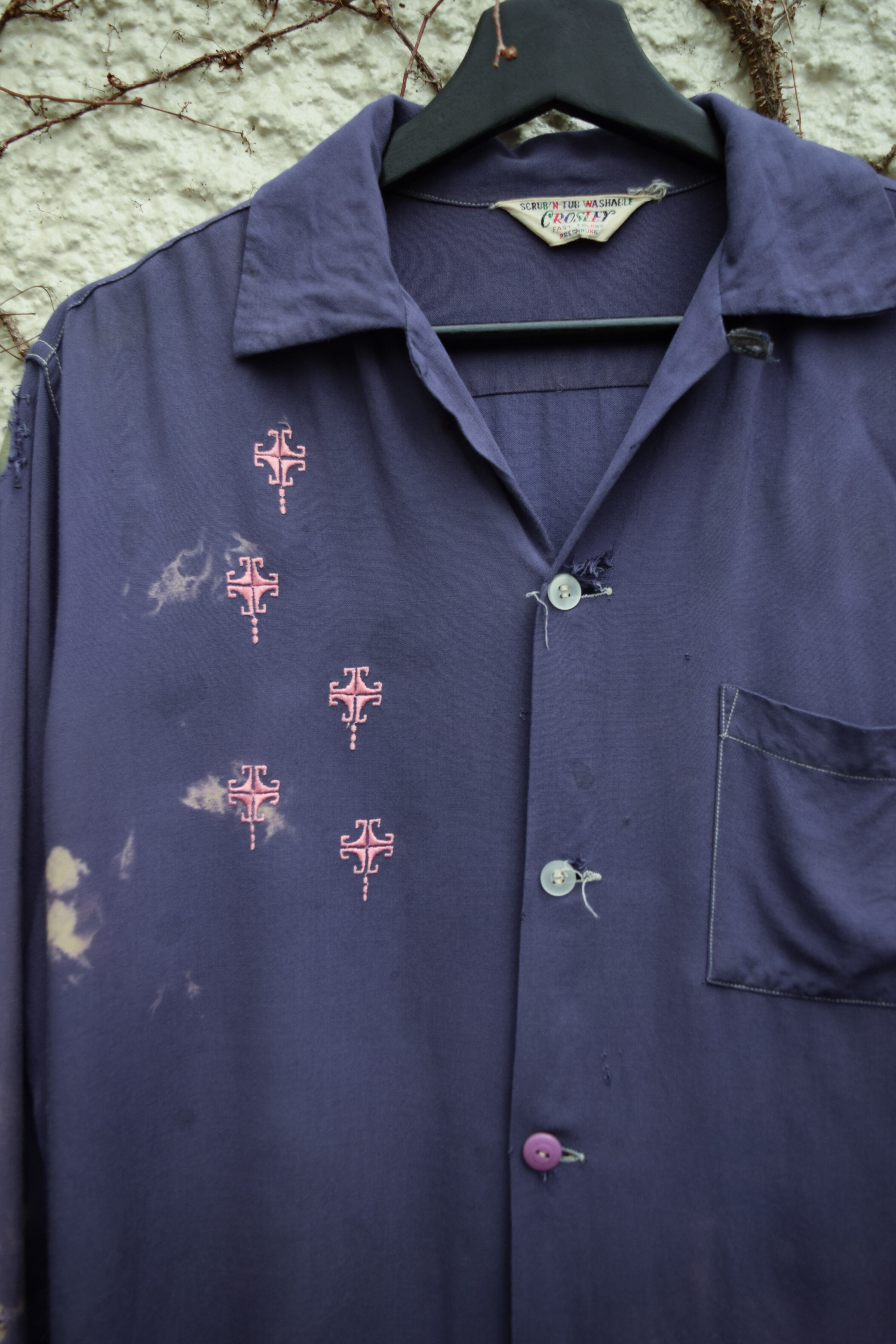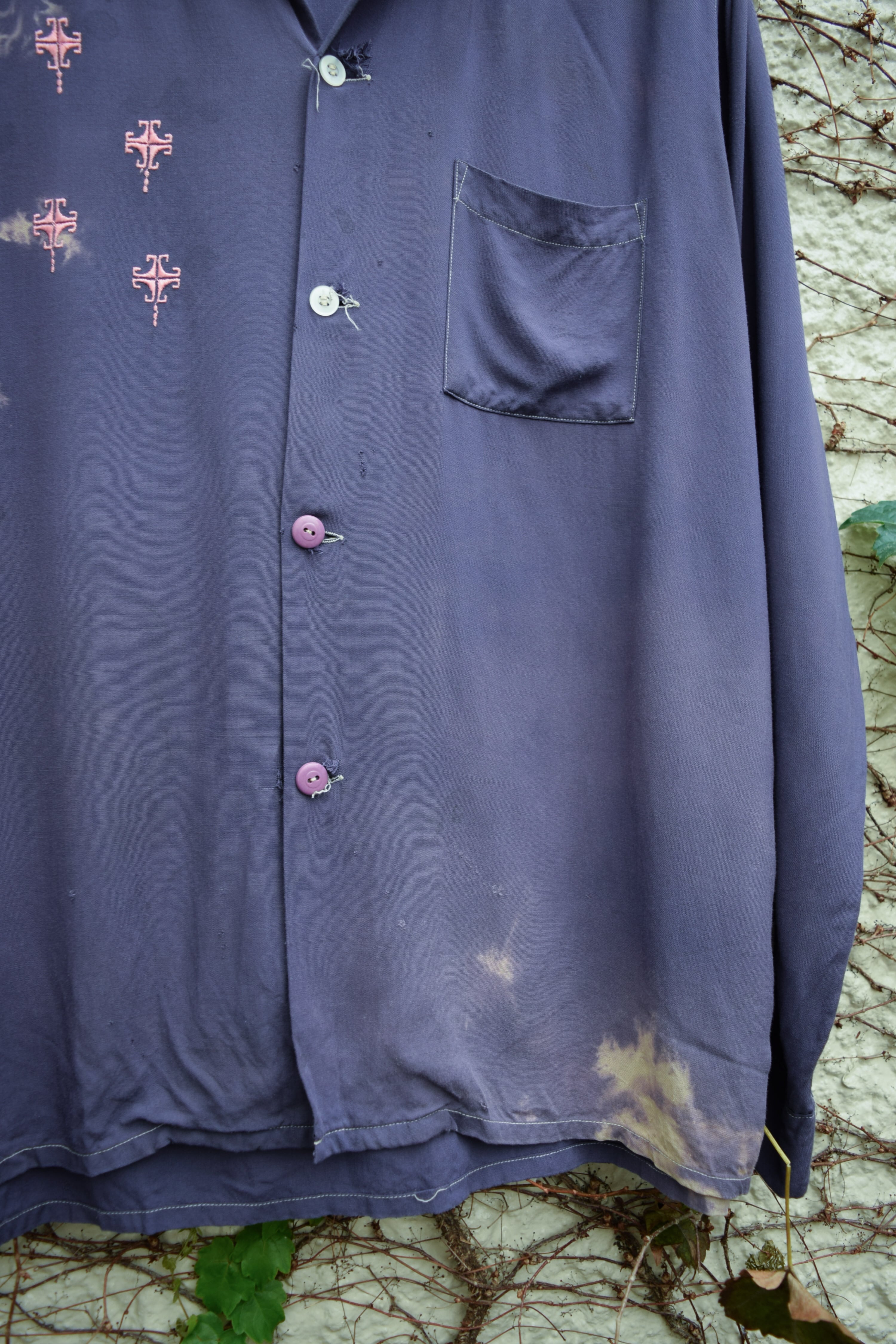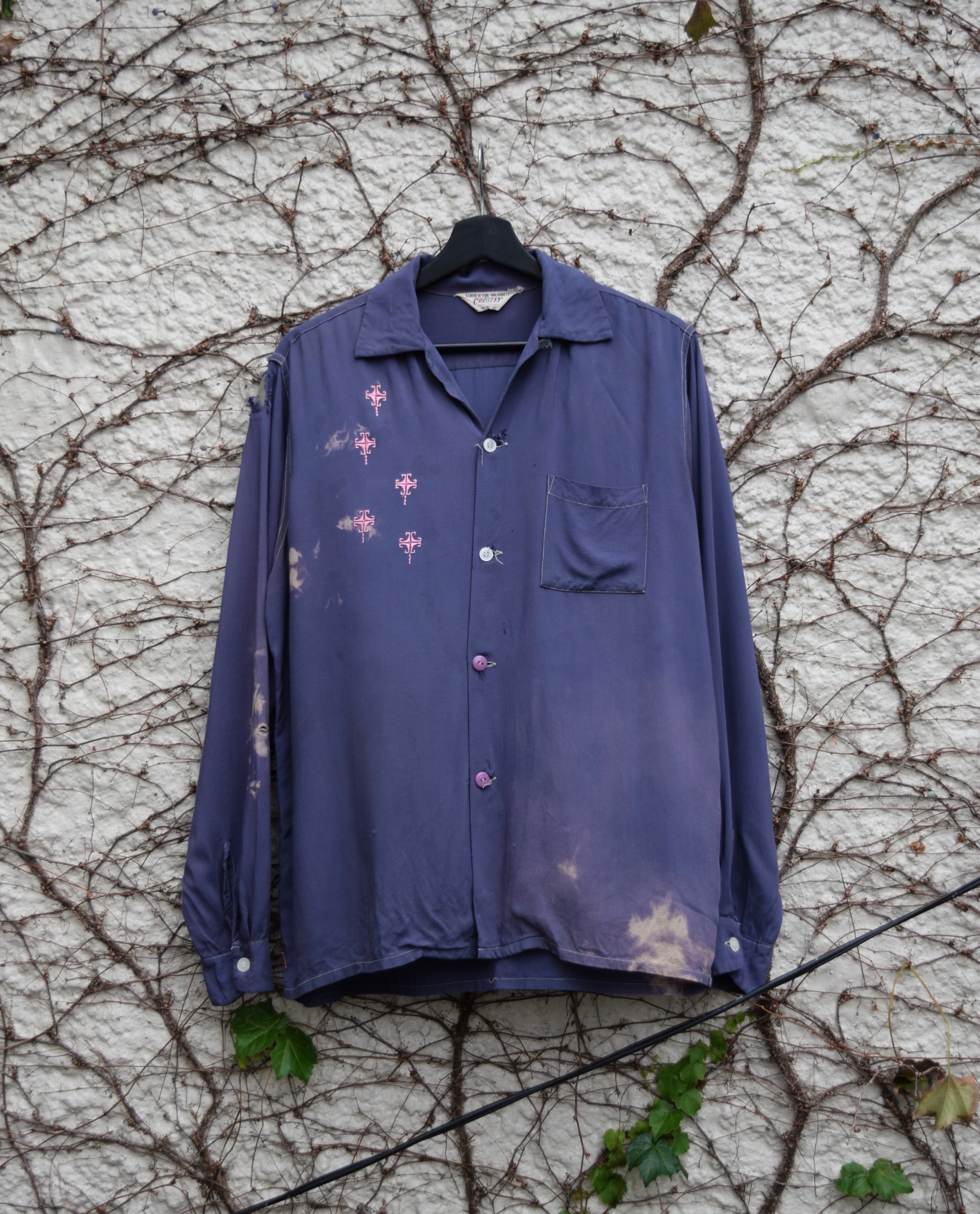 50s us purple×pink rayon loop collar shirt
